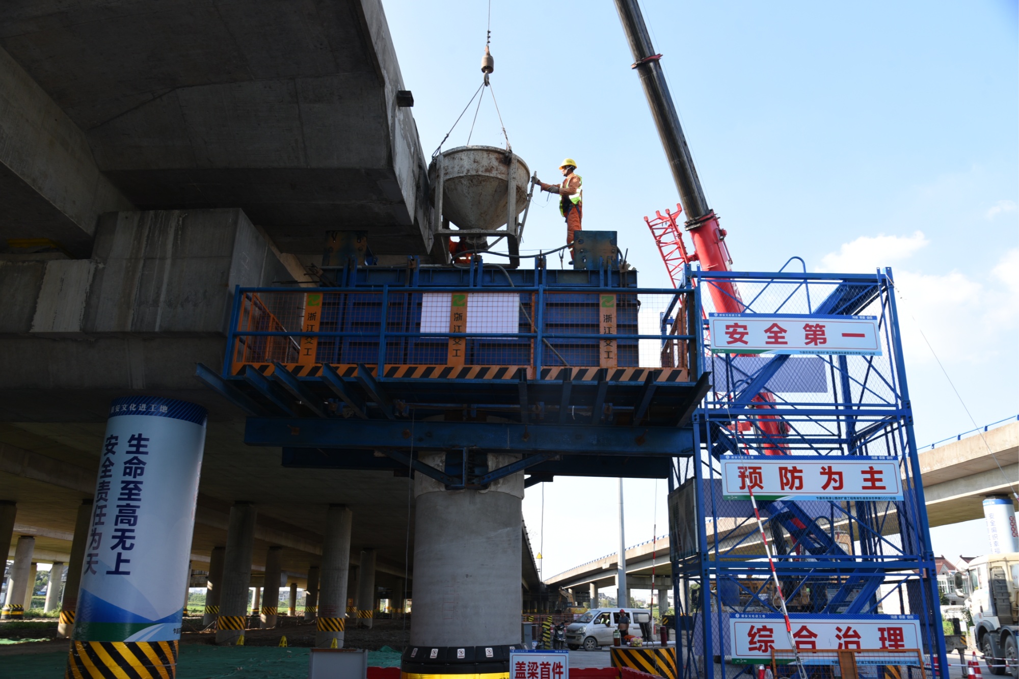 日前,乍嘉苏高速公路改扩建工程南湖互通至浙苏界第SG01标段项目施工现场连续迎来要害性节点:继观音桥纽带主线号墩立柱完结首件浇筑后,首片盖梁也顺畅“出炉”。这不只标志着项目桥梁下部结构施工已由桩基转向地上结构并进入实质性建造阶段,也吹响了嘉兴市重点项目“百日攻坚”举动的冲锋号。